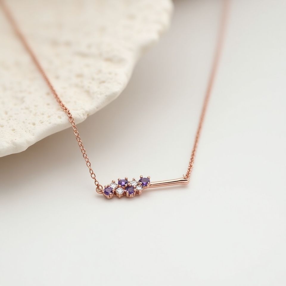 สร้อยคอทองคำแท้ 14K ดีไซน์มินิมอล ประดับพลอยสีม่วงลาเวนเดอร์และเพชร พร้อมใบรับรอง GIA ของขวัญวันครบรอบแบบสั่งทำพิเศษ