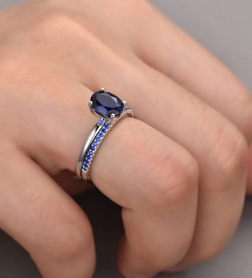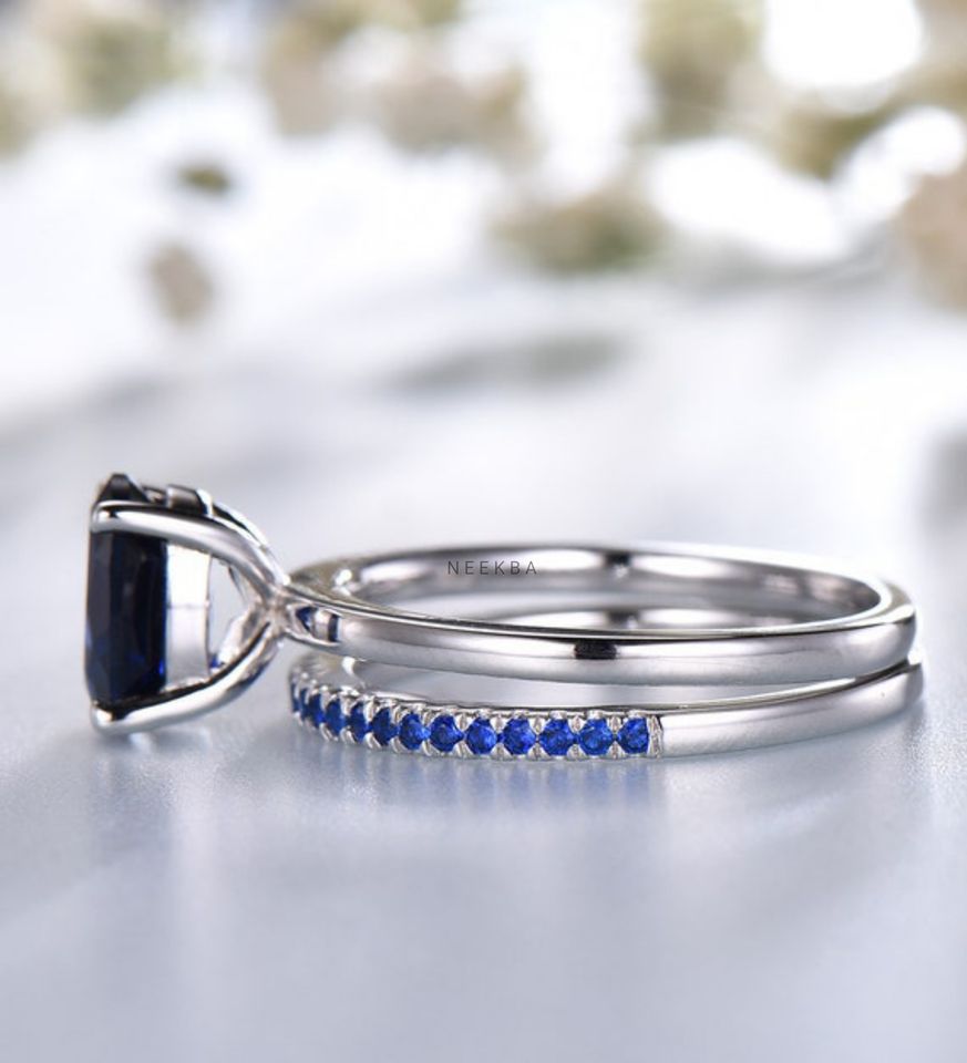 ชุดแหวนแต่งงานไพลินสีน้ำเงินประเภทแหวน