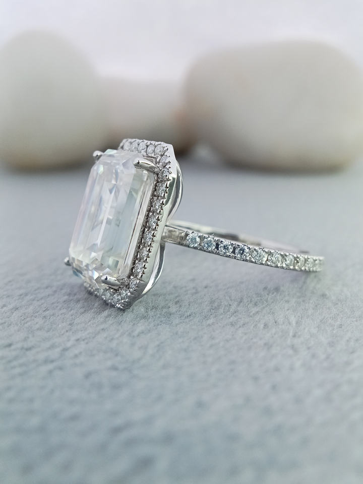 ชุดแหวนแต่งงานและหมั้นหมายเพชร14K สีทองคำขาว VVS ประดับเพชรเทียมที่ได้รับการรับรองมาตรฐาน3.0 CT