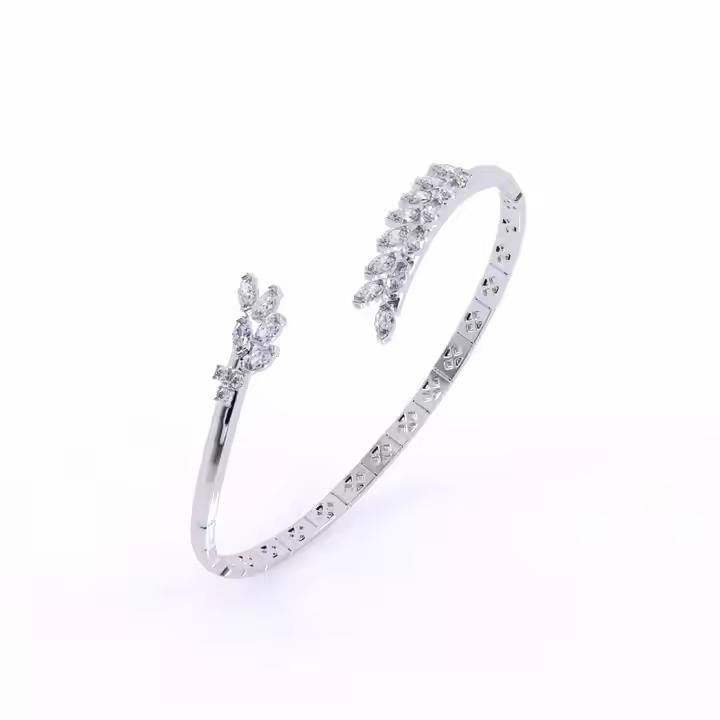 สร้อยข้อมือแบบเปิดออกแบบสีขาว/สีโรสโกลด์14K สร้อยข้อมือเพชรสำหรับปลูกในห้องปฏิบัติการเครื่องประดับชั้นดี