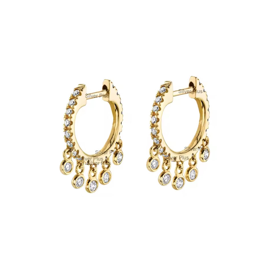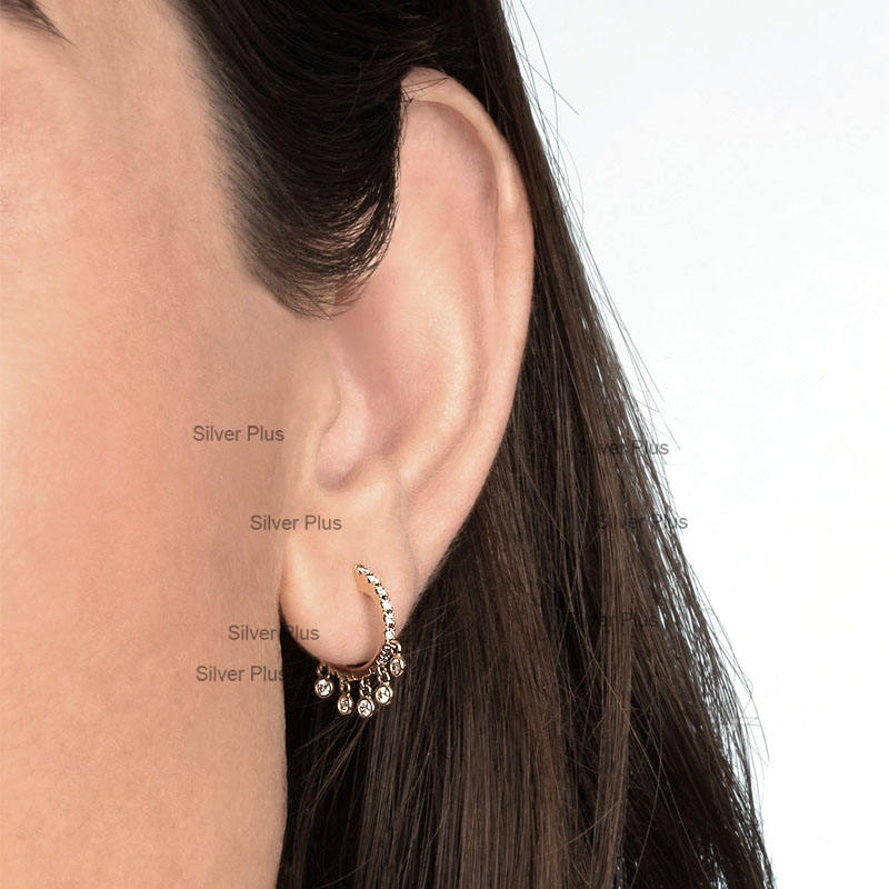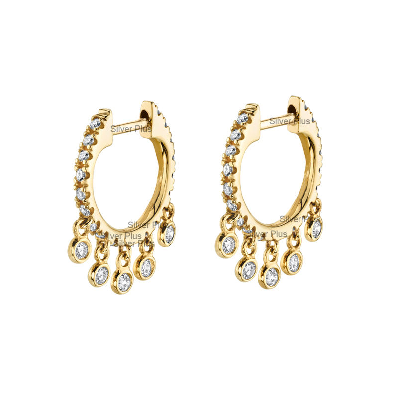 ต่างหูห่วงทองสีเหลืองทึบ14K เครื่องประดับเรียบง่ายพร้อมต่างหูเพชร