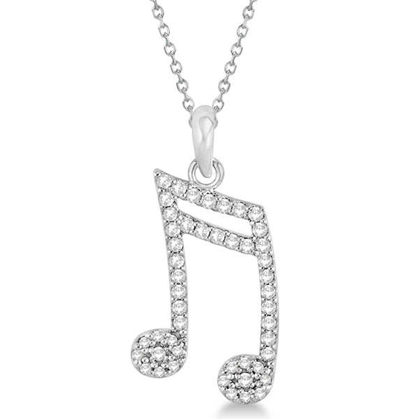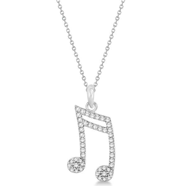 จี้และสร้อยคอทองคำขาว 14K ประดับเพชร 0.20 กะรัต ดีไซน์โน้ตดนตรีที่สิบหก