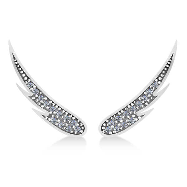 ต่างหูแบบหนีบ ปีกนางฟ้า ประดับเพชร (0.24 กะรัต) ทองคำขาว 14K ดีไซน์เรขาคณิตทันสมัย เหมาะสำหรับงานแต่งงาน ของขวัญ ทำจากทองเหลืองประดับเพชรซิร์คอน