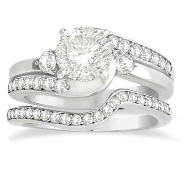แหวนหมั้นและแหวนแต่งงานทองคำขาว 14K ประดับเพชร 0.58 กะรัต ลายวน ชุดเครื่องประดับชั้นดี