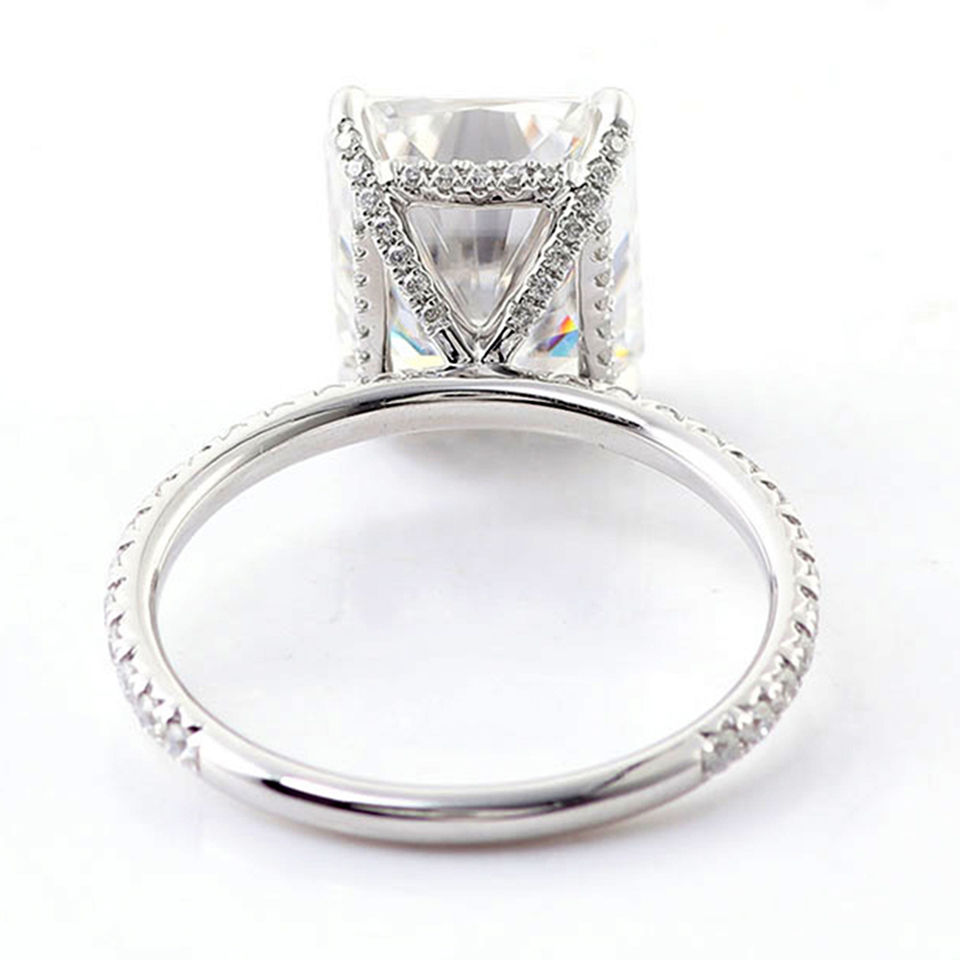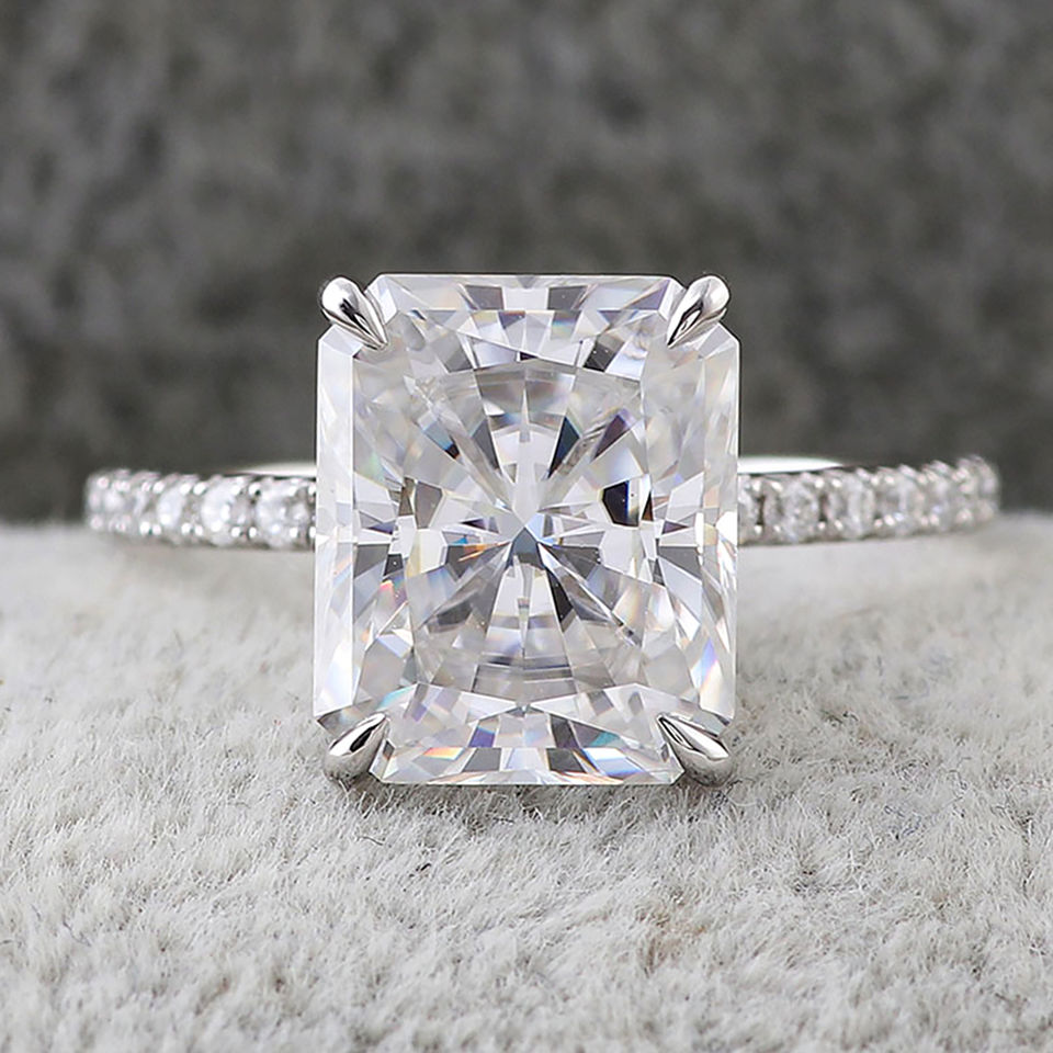 แหวนแต่งงานเพชรทรงเรเดียนท์ 1.1 กะรัต ทองคำขาว 14K ได้รับการรับรองจาก IGI เพชรเพาะเลี้ยงในห้องปฏิบัติการ ดีไซน์หรูหรา แหวนหมั้น เครื่องประดับ