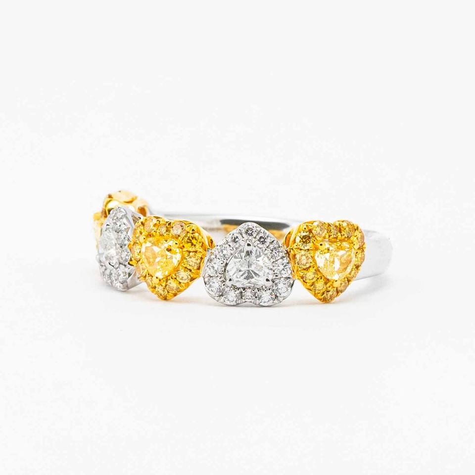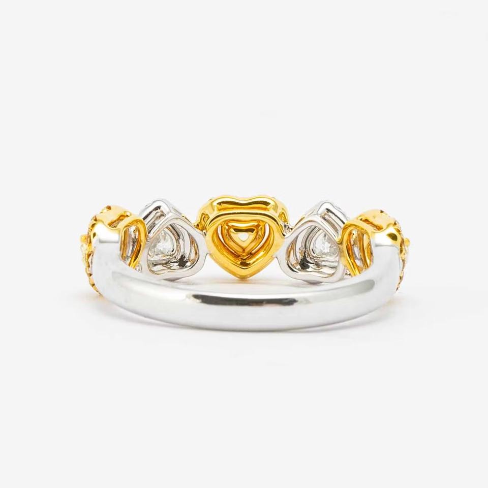 แหวนทองคำขาว 14K ประดับเพชรเหลืองแฟนซีทรงหัวใจ 0.72 กะรัต VS+ เพชรเลี้ยงในห้องปฏิบัติการ ฝังแบบพาเว่ รับรองโดย IGI สำหรับผู้หญิง ดีไซน์แบบคลัสเตอร์ครึ่งวง