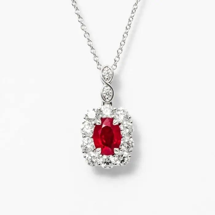 Design:Oval Ruby & Lab-Grown Diamond Solitare Necklace