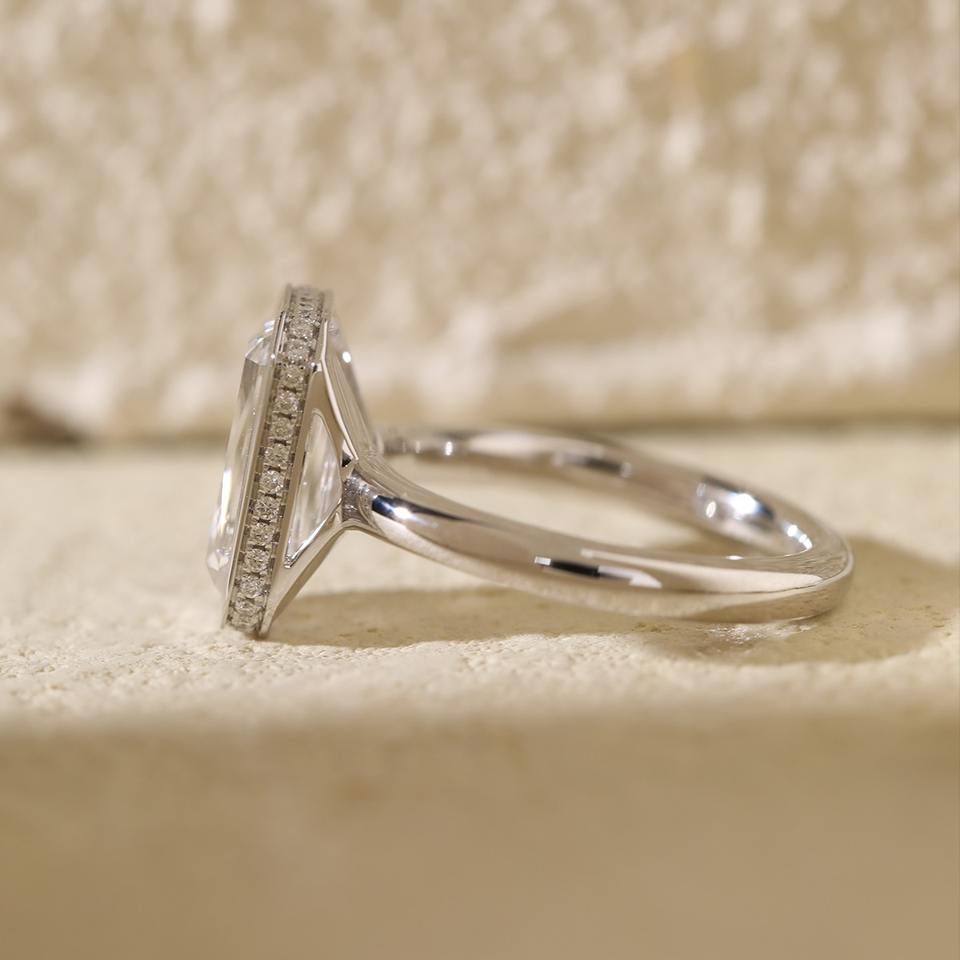 แหวนทองคำ 14K สีเหลือง 3 กะรัต ทรงคริสคัท ประดับเพชรทรงกลมแบบแล็บ พร้อมวงแหวนซ่อนรอบเพชร สำหรับผู้หญิง