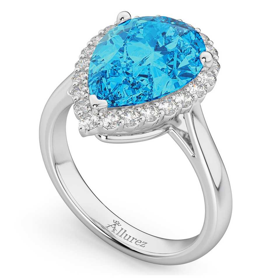 แหวนหมั้นทองคำขาว 14K 8.94 กะรัต ทรงลูกแพร์ ประดับด้วยบลูโทปาซและเพชร สไตล์หรูหรา