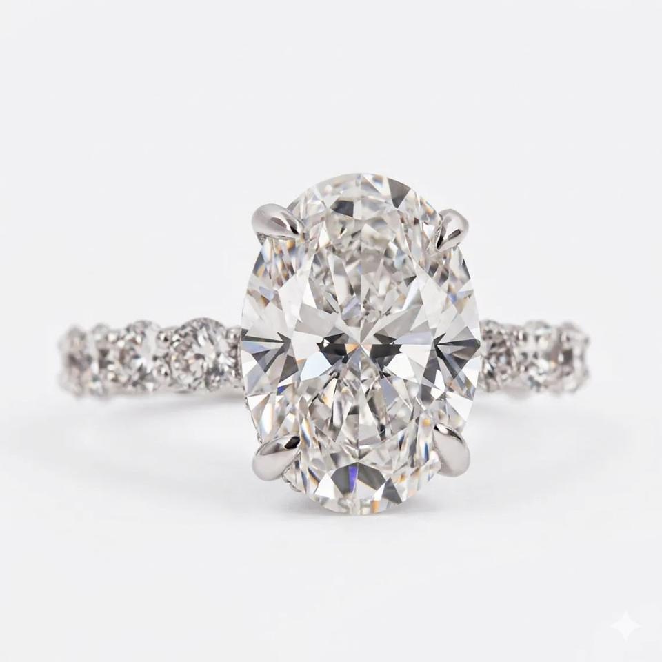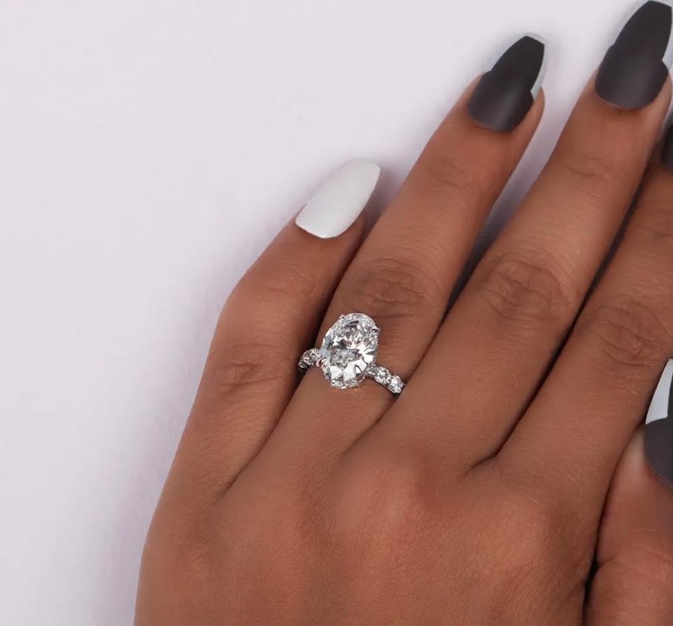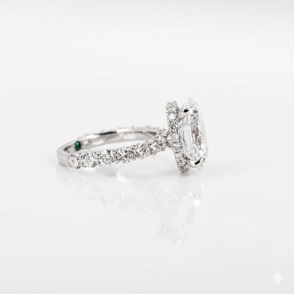 แหวนหมั้นเพชรทรงรี 1.30 กะรัต เพชรเลี้ยงในห้องปฏิบัติการ รับรองสี DEF ความสะอาด VS-VVS ตัวเรือนเงินแท้ 925 ชุบทองคำขาว 14K พร้อมวงแหวนซ่อนรอบเพชร