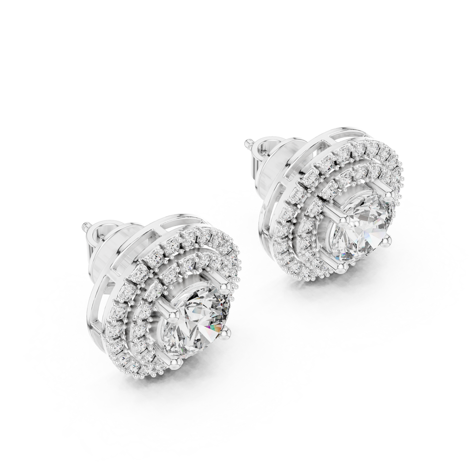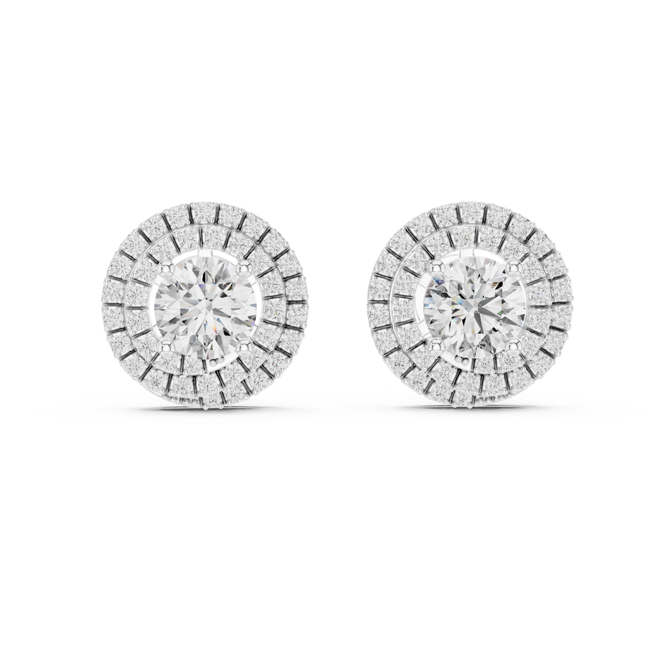 ต่างหูเงินแท้ทรงกลมสองชั้นประดับเพชรโมอิสซาไนต์ทรงบริลเลียนต์ รับรองโดย IGI เหมาะสำหรับงานแต่งงาน งานฉลองครบรอบ และงานเลี้ยงสังสรรค์ เครื่องประดับคุณภาพสูง