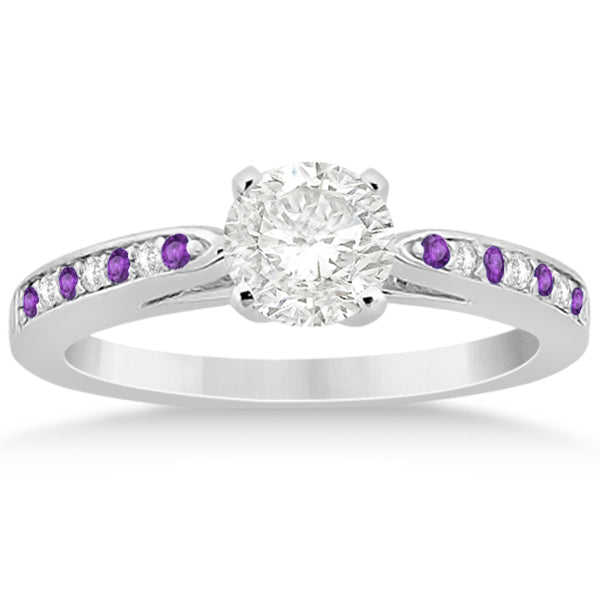 แหวนหมั้นทองคำขาว 14K ประดับเพชร 0.26 กะรัต และอเมทิสต์ แหวนเพชรดีไซน์หรูหรา