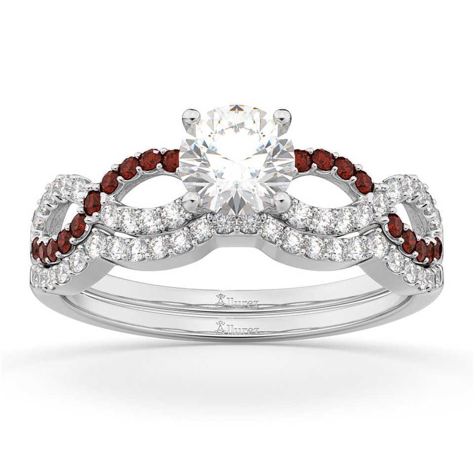 ชุดเครื่องประดับทองคำขาว 14K แหวนหมั้นเพชรและโกเมนทรงอินฟินิตี้ 0.34 กะรัต