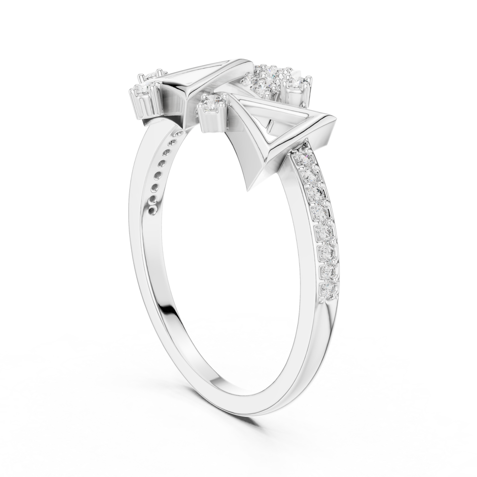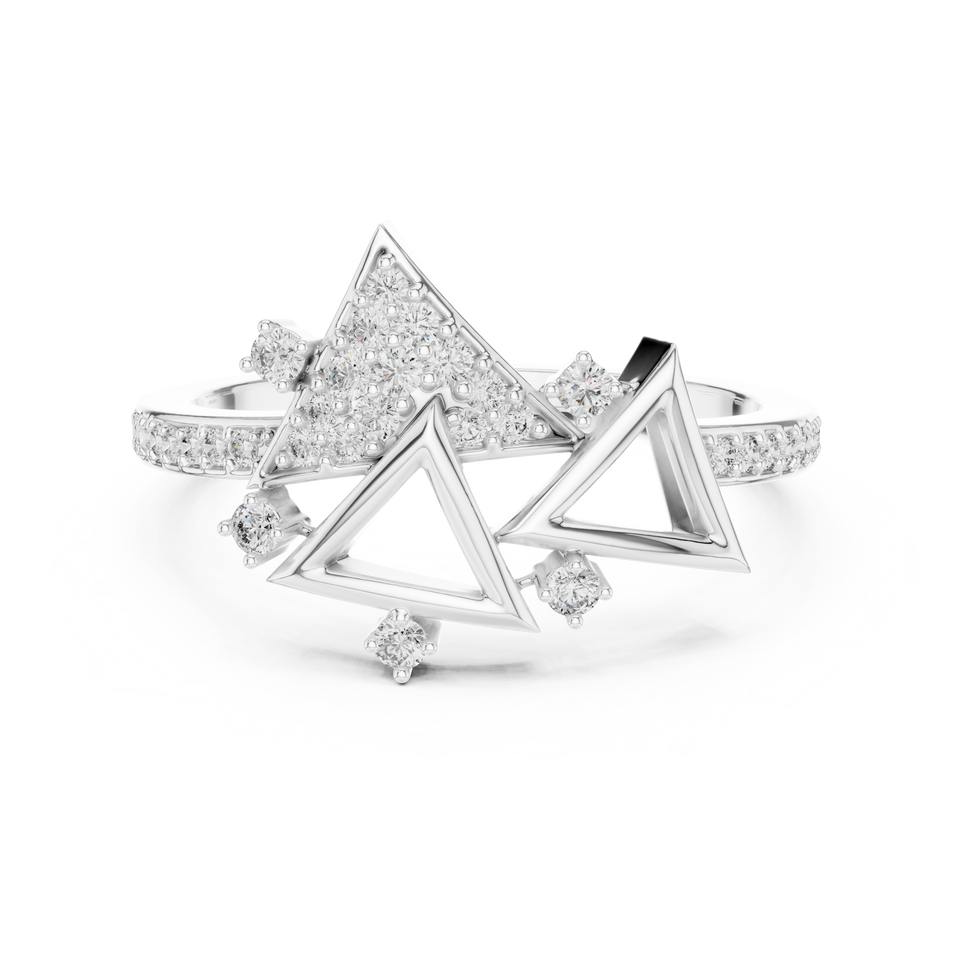 แหวนเพชรรูปทรงสามเหลี่ยมสามเหลี่ยมสามมิติ ดีไซน์หรูหรา ชุบโรเดียม ทองคำขาว 14K เพชรเพาะเลี้ยงในห้องปฏิบัติการ
