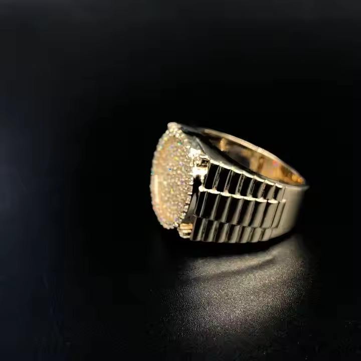 แหวนเพชรสีทองคำขาวสำหรับผู้ชาย14K แหวนรัศมีวงเพชรเปล่งประกายสำหรับผู้ชาย