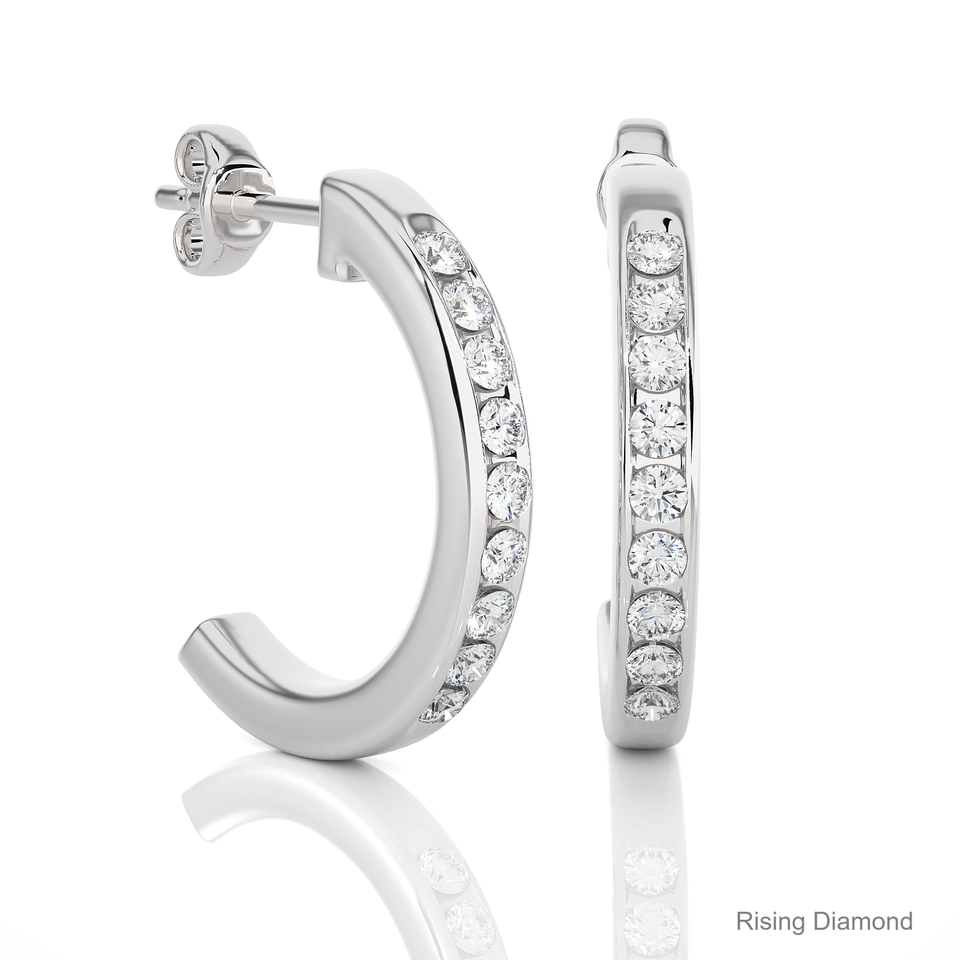 ต่างหูห่วงทองคำขาว14K 0.46วงได้รับการรับรอง CVD ต่างหูเพชรสำหรับปลูกในห้องปฏิบัติการทรงกลม