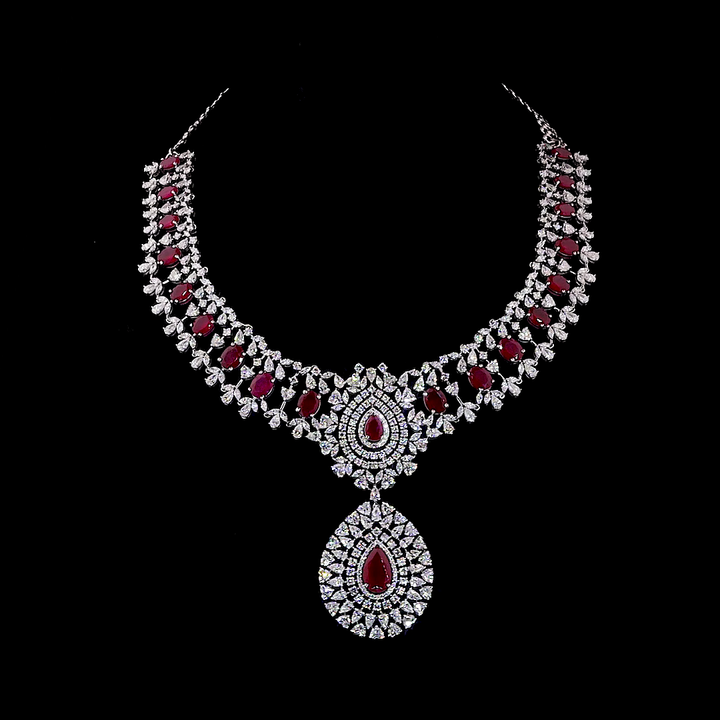 ชุดสร้อยคอทองคำขาว 14K ประดับเพชรแล็บ IGI พร้อมพลอยสีแดงทับทิม สำหรับเจ้าสาว งานแต่งงาน หรูหรา