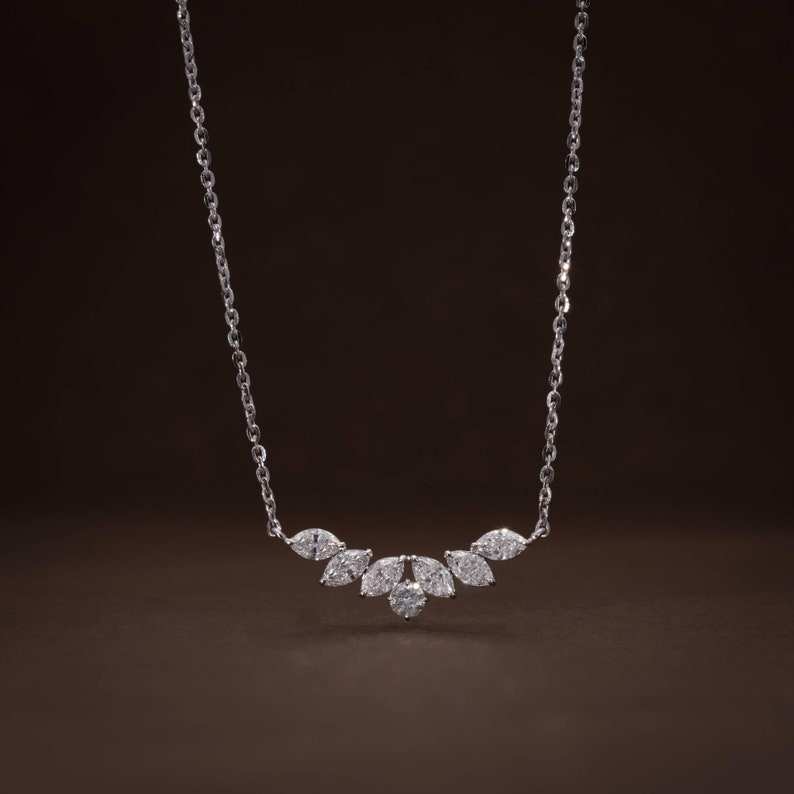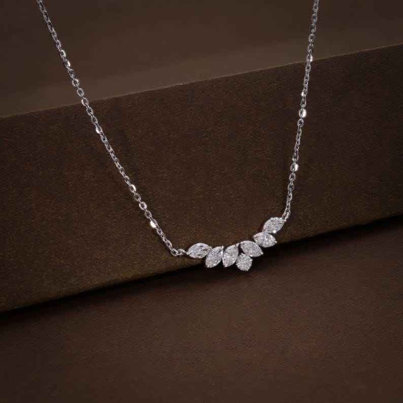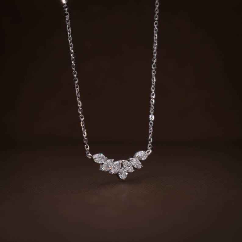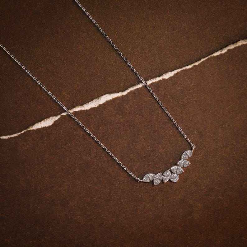 จี้เพชรทรงมาร์คีส์ 1.40 กะรัต VVS ทองคำขาว 14K เพชรเลี้ยงในห้องปฏิบัติการ รับรองโดย IGI ของขวัญหมั้นสไตล์วินเทจ สร้อยคอ 18 นิ้ว