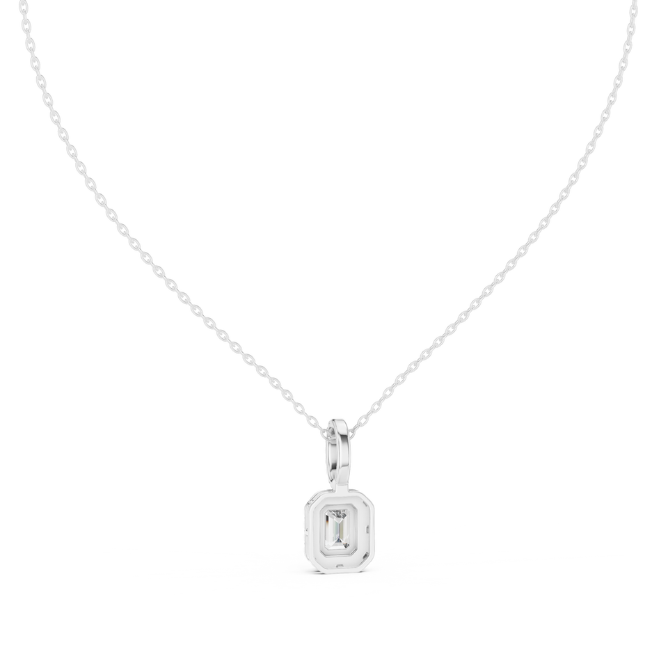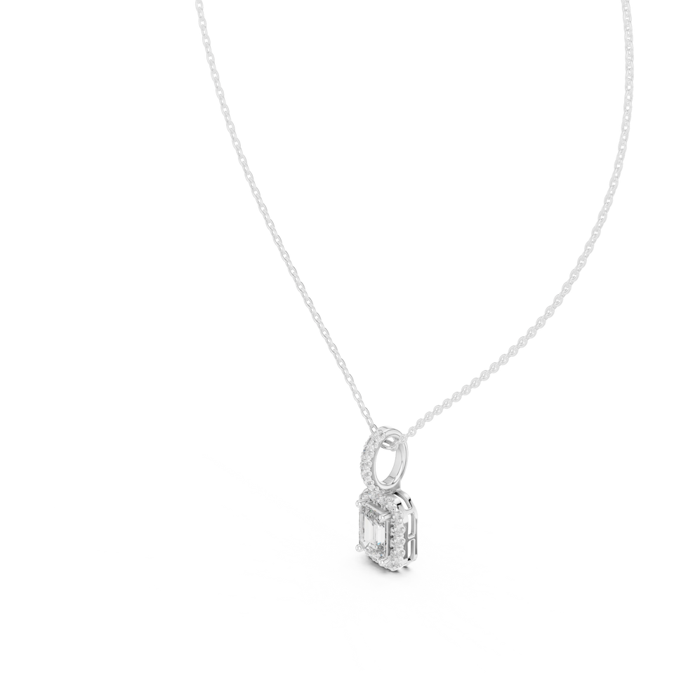 จี้เพชรทรงกลมสีเขียวมรกตหรูหรา 14K ทองคำขาว ประดับเพชรแล็บโกรว์ ทรงรัศมี สำหรับผู้หญิง ชุบโรเดียม