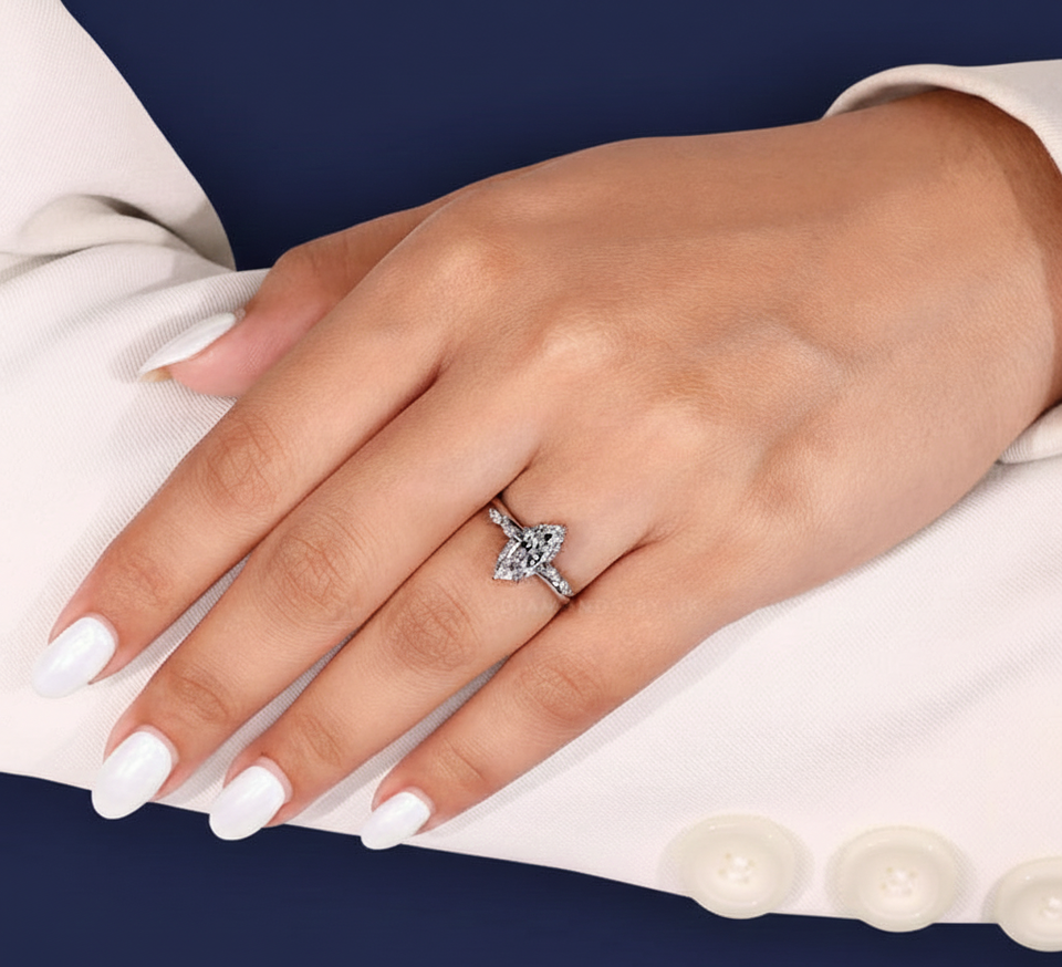 แหวนหมั้นเพชรแล็บทรงมาร์คีส์