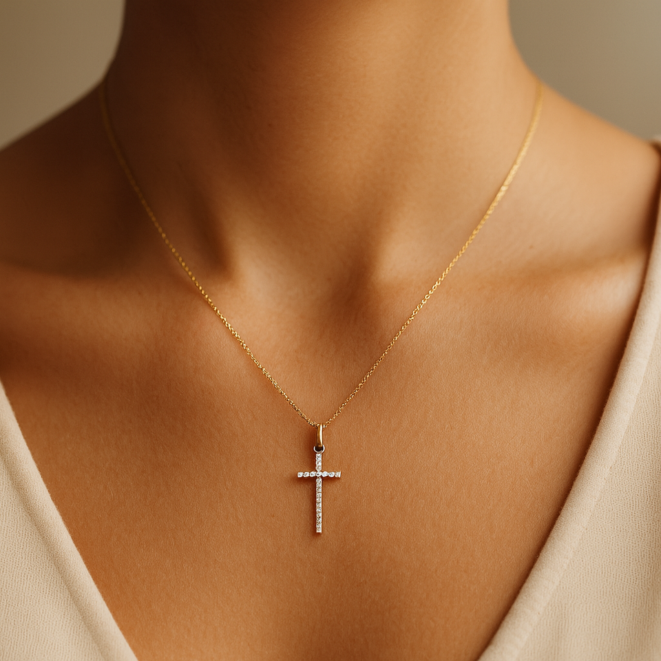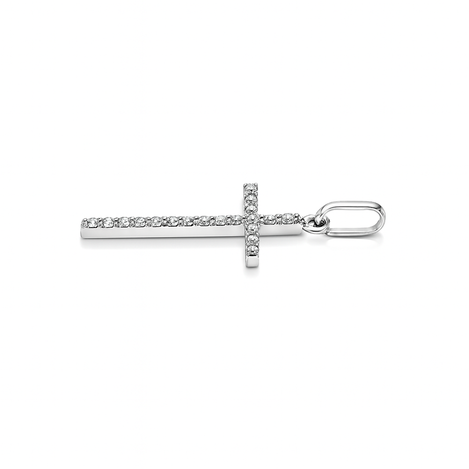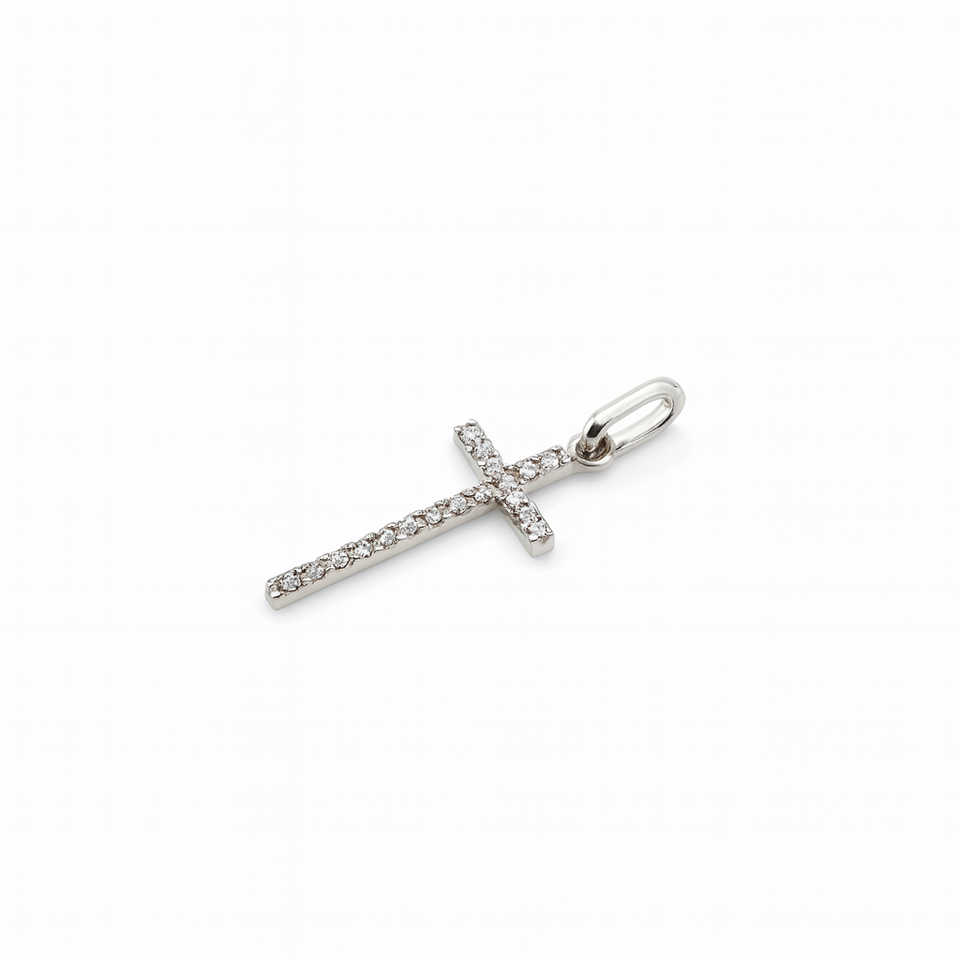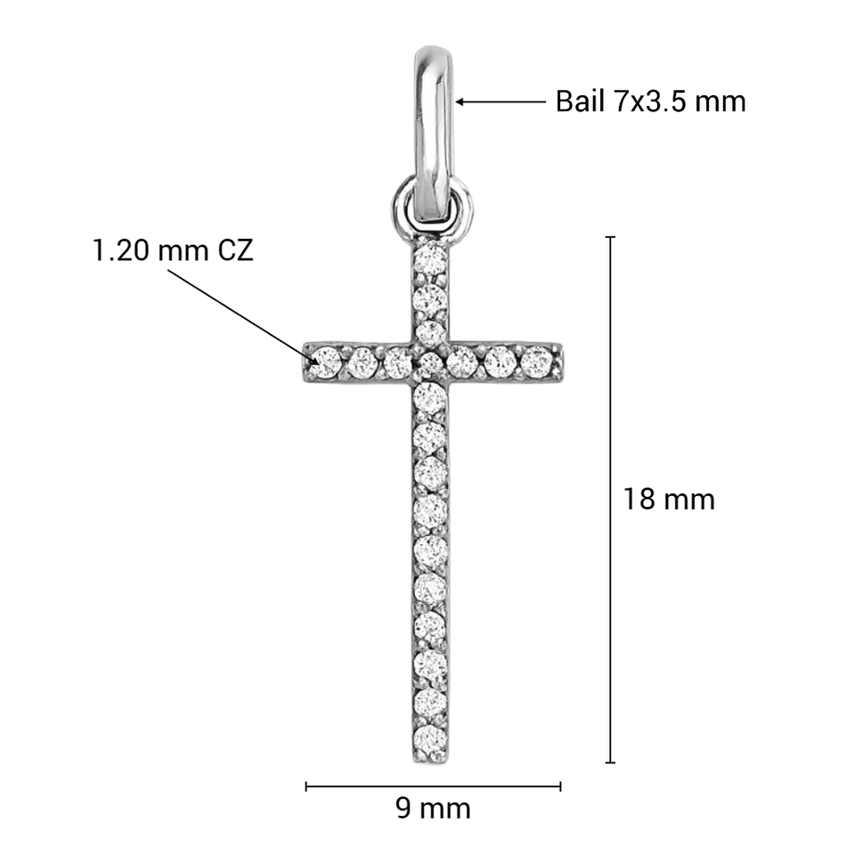 จี้ทองคำขาว 14K ดีไซน์เรียบง่าย สไตล์ศาสนา รูปทรงกางเขนบาง ประดับด้วยเพชรคิวบิกเซอร์โคเนียขนาด 1.20 มม. สำหรับผู้หญิง
