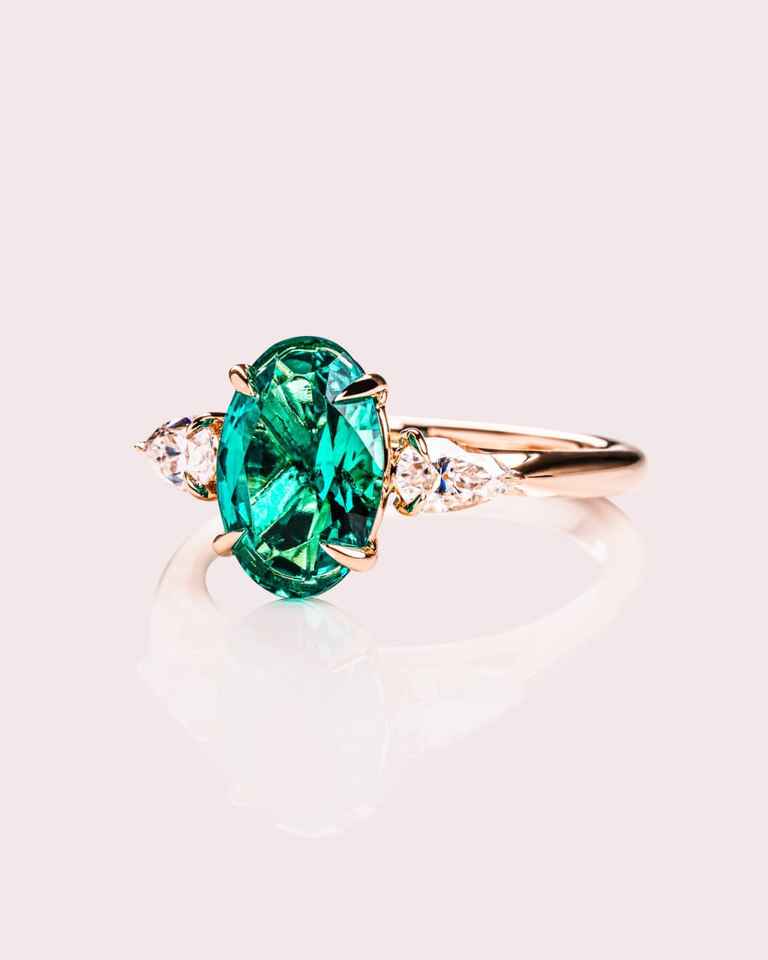 ออกแบบ: แหวนเพชรโมอิสสีเขียวมรกต