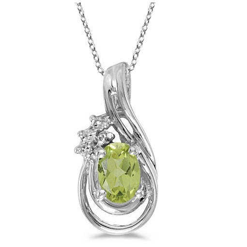 สร้อยคอจี้รูปหยดน้ำประดับเพอริดอทและเพชรทรงรีทองคำขาว 14K