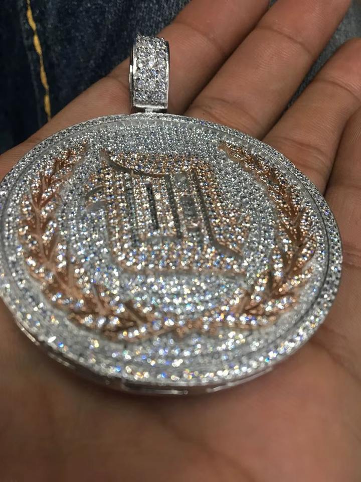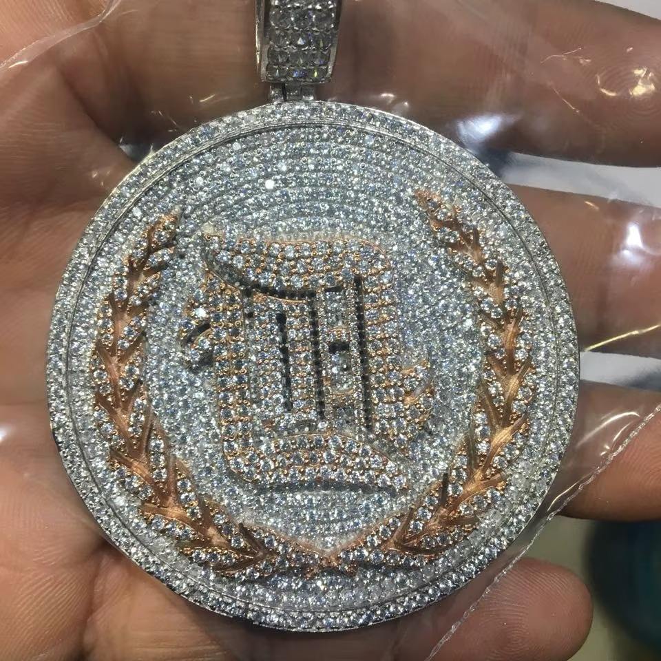 จี้ห้อยคอทรงกลมแบบปรับแต่งได้สไตล์ฮิปฮอป ประดับเพชรโมอิสซาไนต์แท้ 3.50 กะรัต ชุบเงิน สำหรับงานปาร์ตี้
