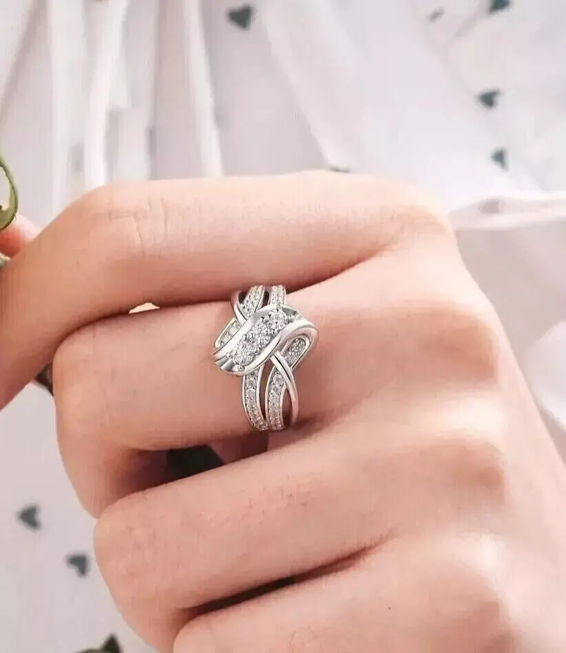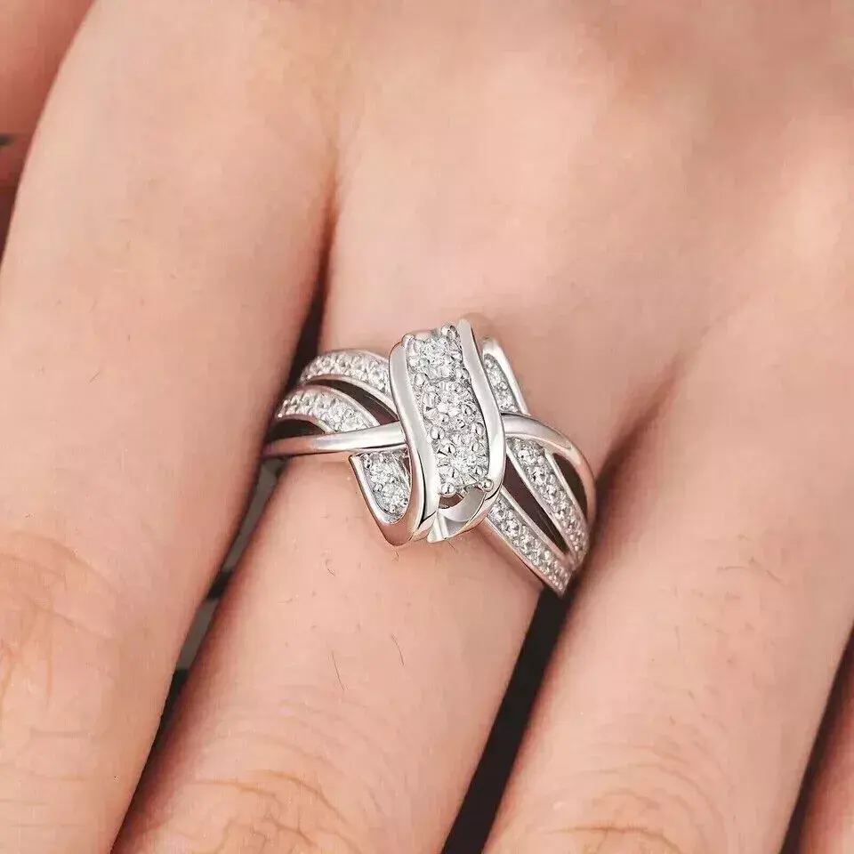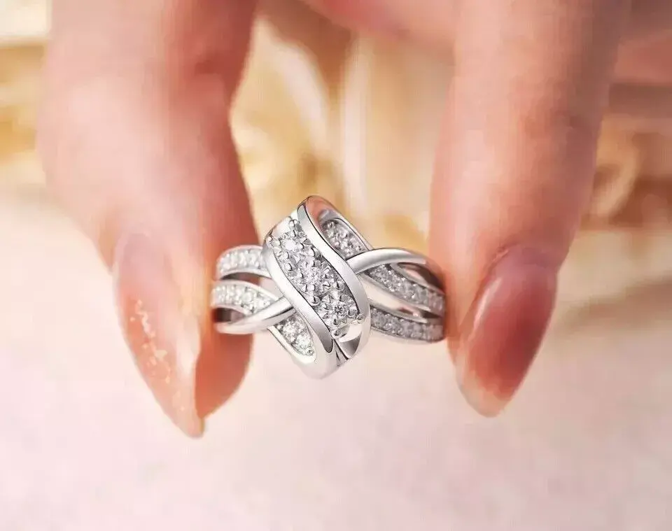 แหวนทองคำขาวประดับเพชร14K สีขาวเงินแท้ tishya แหวนแต่งงานวินเทจของผู้หญิงของขวัญงานหมั้นของขวัญวันครบรอบ
