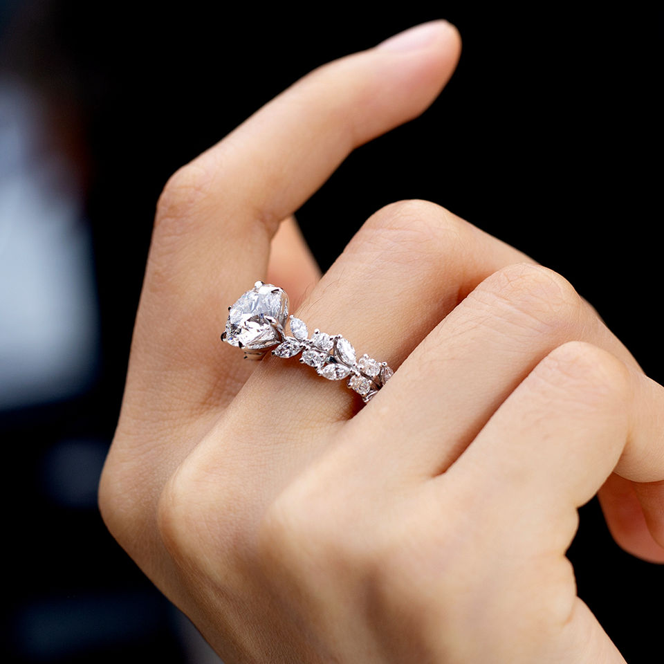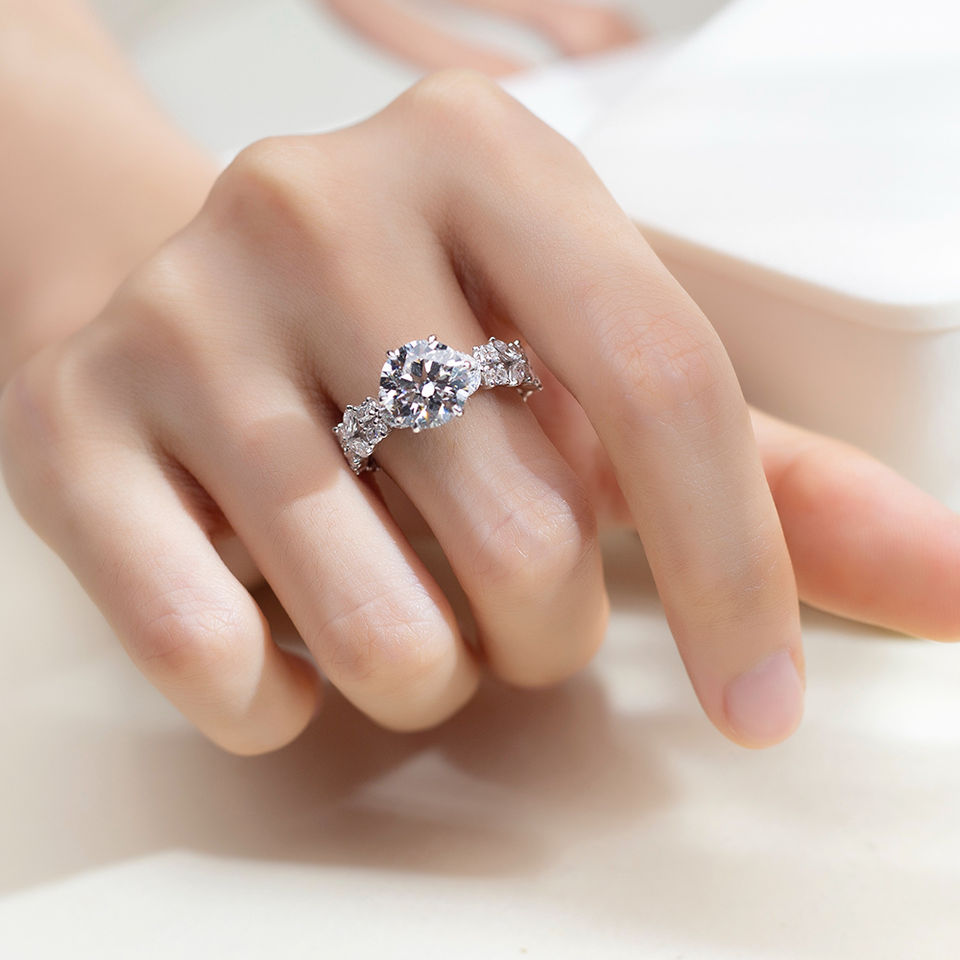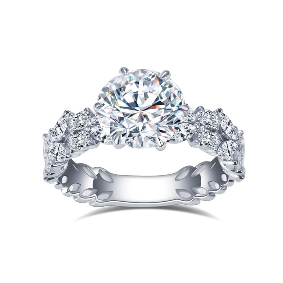 แหวนเพชรโมอิสอัญมณีแท้ชุบทองคำขาว14K แหวนหมั้นประดับเพชรแบบหลายชั้นหินปูสำหรับงานแต่งงานของขวัญครบรอบ