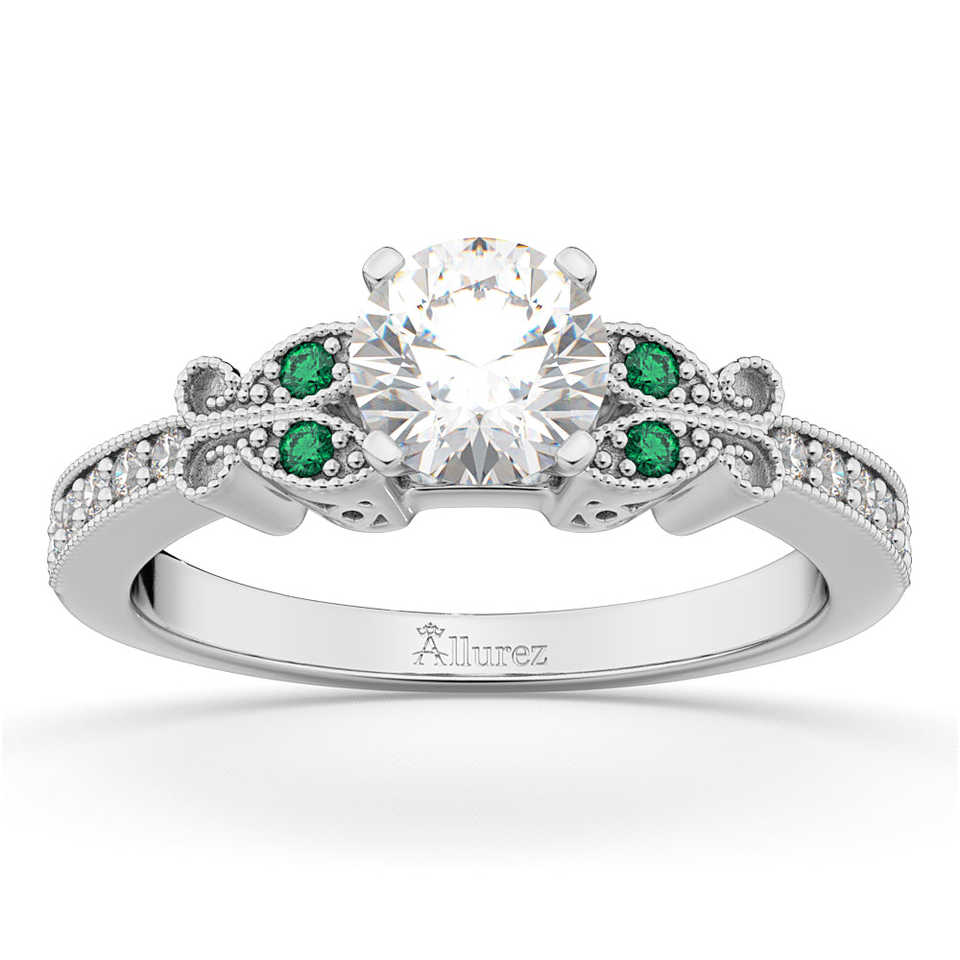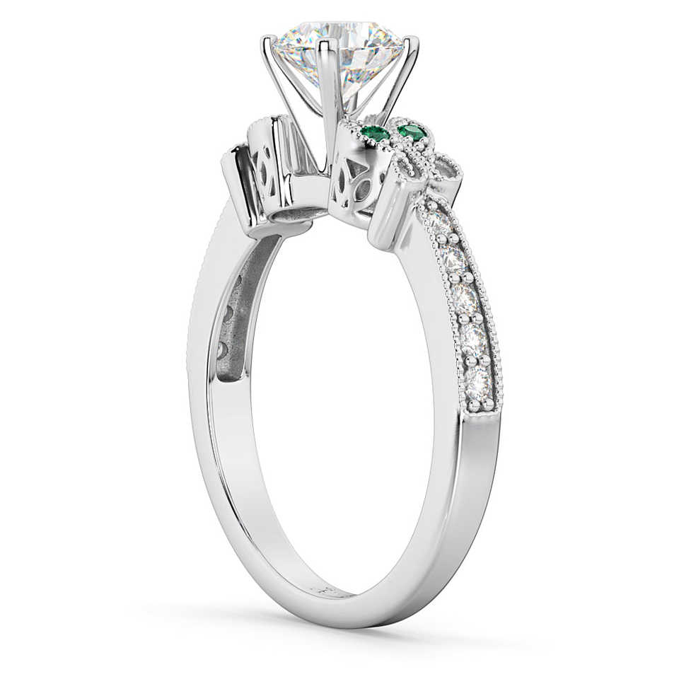 แหวนหมั้นทองคำขาว 14K ประดับเพชรทรงโรแมนติกและมรกตทรงเหลี่ยม 0.20 กะรัต ชุบโรเดียม ได้รับการรับรองจาก IGI สำหรับคำมั่นสัญญา