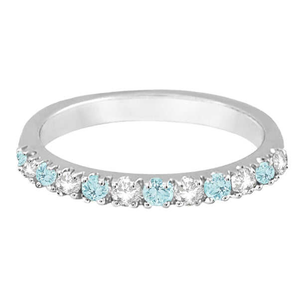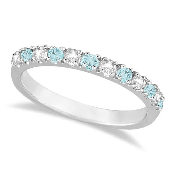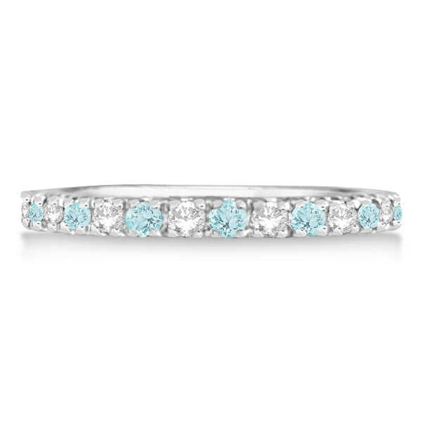 แหวนทองคำขาว 14K ประดับเพชรและอะความารีนทรงรี 0.32 กะรัต ดีไซน์โรแมนติก พร้อมวงแหวนฉลองครบรอบ ชุบโรเดียม เครื่องประดับแพลตตินัม