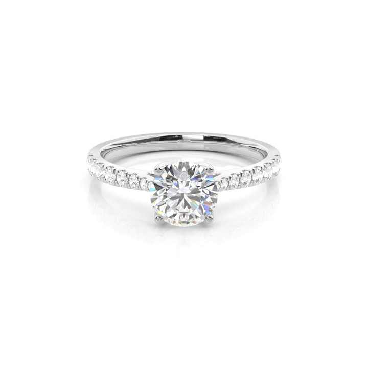 แหวนหมั้นเพชรทรงกลมเพาะเลี้ยงในห้องปฏิบัติการทองคำขาว 14K สำหรับผู้หญิง | ของขวัญวันครบรอบแต่งงาน ชุบทองสไตล์ชาติพันธุ์