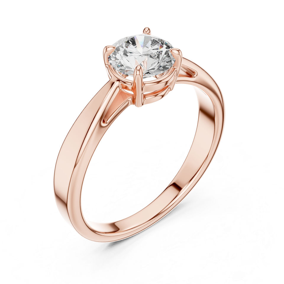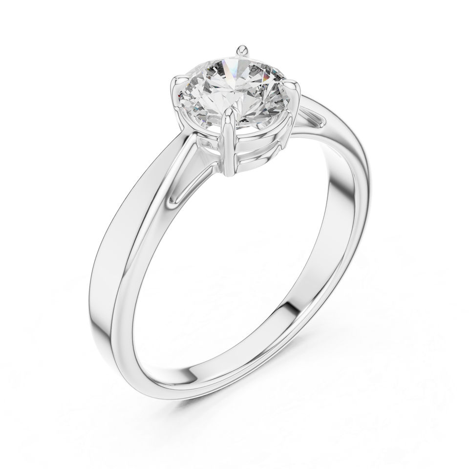แหวนเพชรทรงกลมสีขาวทอง 14K สำหรับผู้หญิง | แหวนสวมใส่ประจำวัน | เพชรที่เพาะเลี้ยงใหม่