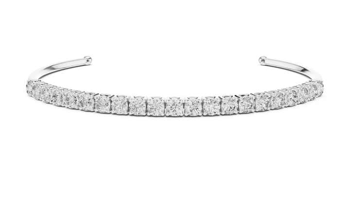 กำไลข้อมือเพชรทรงกลม 14K ทองคำขาว เพชรเลี้ยงในห้องปฏิบัติการ สำหรับเจ้าสาว ผู้หญิง หรูหรา ได้รับการรับรอง เหมาะเป็นของขวัญวันครบรอบแต่งงาน เครื่องประดับอันหรูหรา