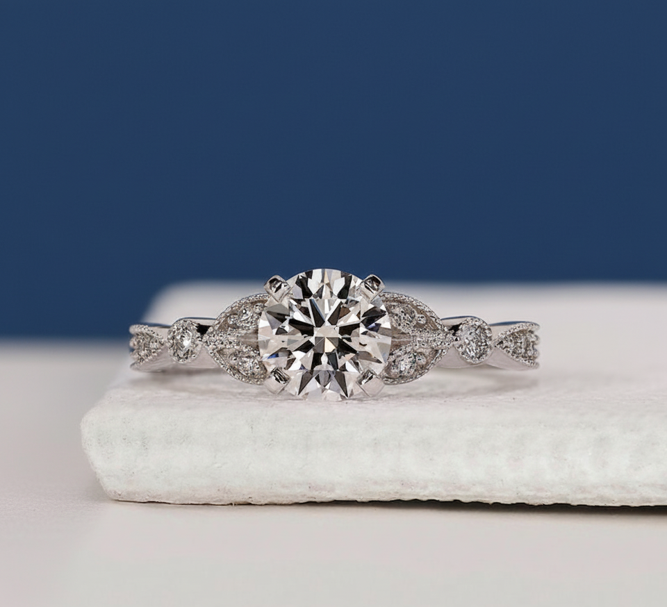 แหวนหมั้นเพชรทรงกลม 1.19 กะรัต ทองคำขาว 14K เพชรเลี้ยงในห้องปฏิบัติการ ระดับความสะอาด VVS2 สี F ได้รับการรับรองจาก IGI ชุบโรเดียม เครื่องประดับขายส่งสำหรับผู้หญิง