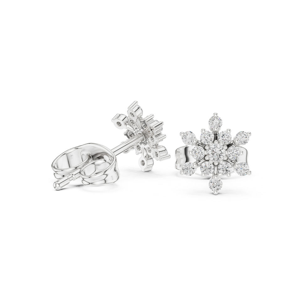 ต่างหูเพชรทรงกลมเพาะเลี้ยงในห้องปฏิบัติการ ทองคำขาว 14K สำหรับผู้หญิง สวมใส่ได้ทุกวัน | เพชรที่เพิ่งเพาะเลี้ยง