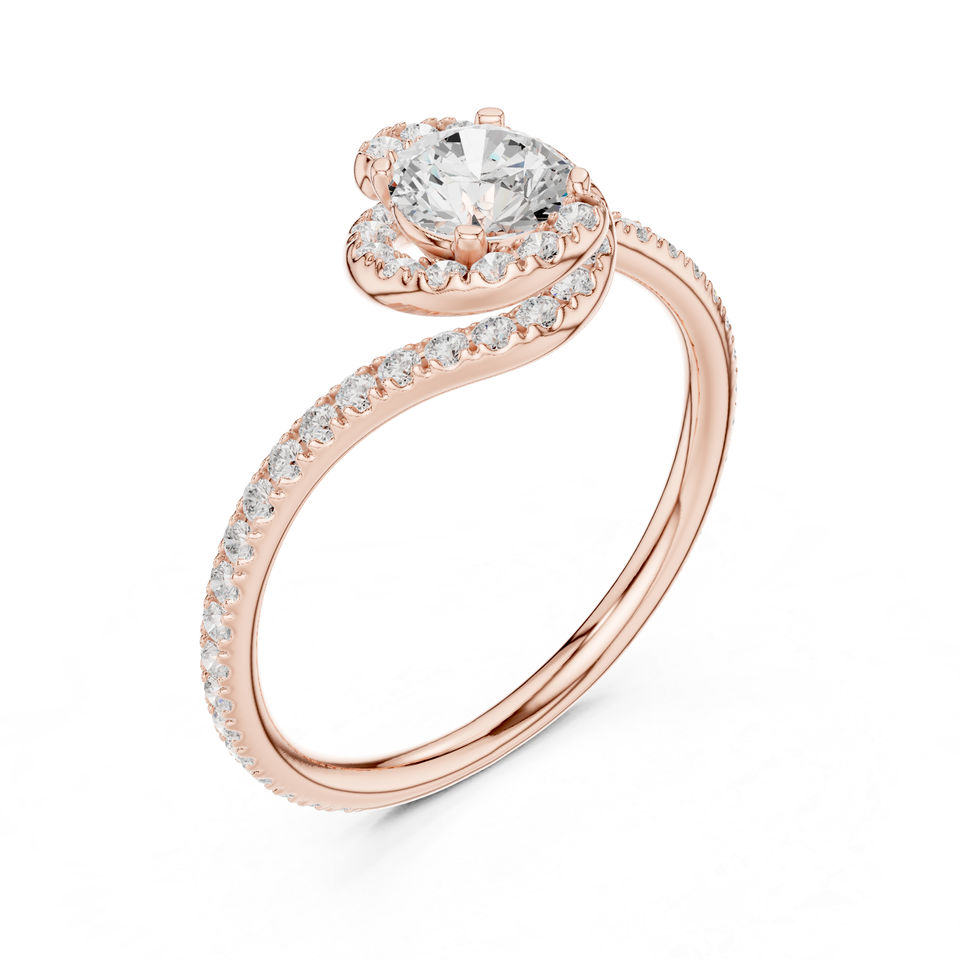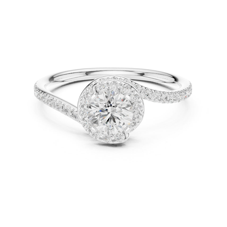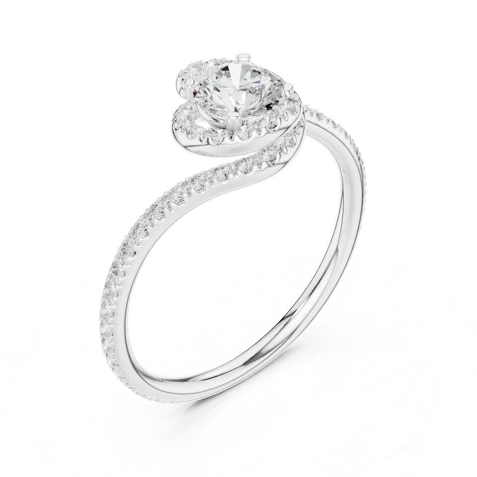 แหวนเพชรทรงกลมทองคำขาว 14K สำหรับผู้หญิง | ชุดทำงาน | เพชรที่เพิ่งเพาะเลี้ยง