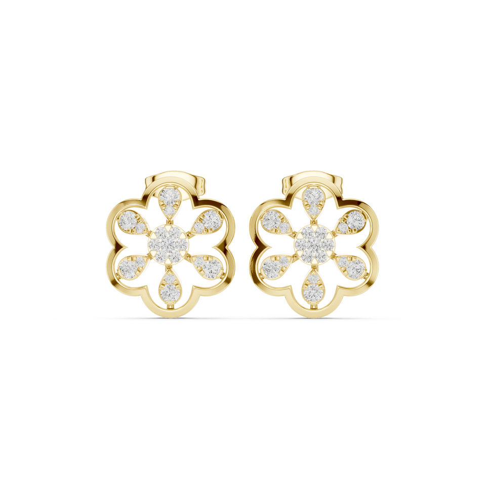 ต่างหูเพชรทรงกลม 14K ทองคำขาว เพชรเพาะเลี้ยงสำหรับผู้หญิง สวมใส่ทำงาน เพชรเพาะเลี้ยงใหม่