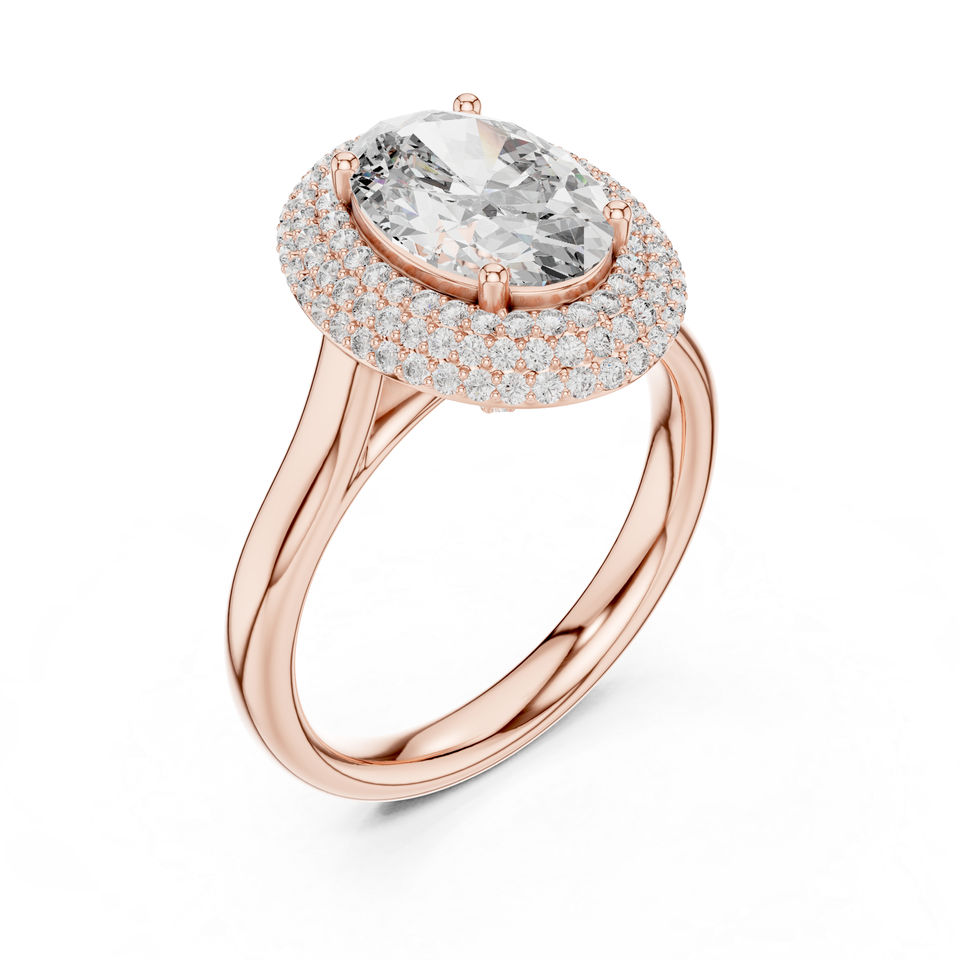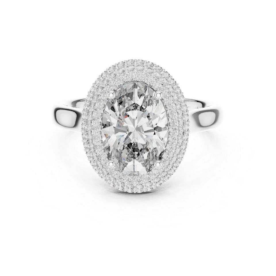 แหวนแต่งงานเพชรทรงกลมและวงรีเพาะเลี้ยงในห้องปฏิบัติการทองคำขาว 14K สำหรับผู้หญิง | เพชรที่เพิ่งเพาะเลี้ยง