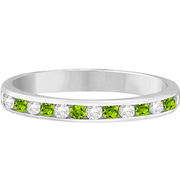 แหวนทองคำขาว 14K แบบกึ่งนิรันดร์ ประดับเพอริดอตและเพชร (0.40 กะรัต)
