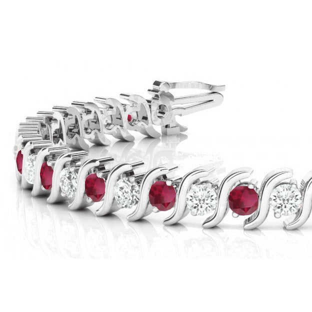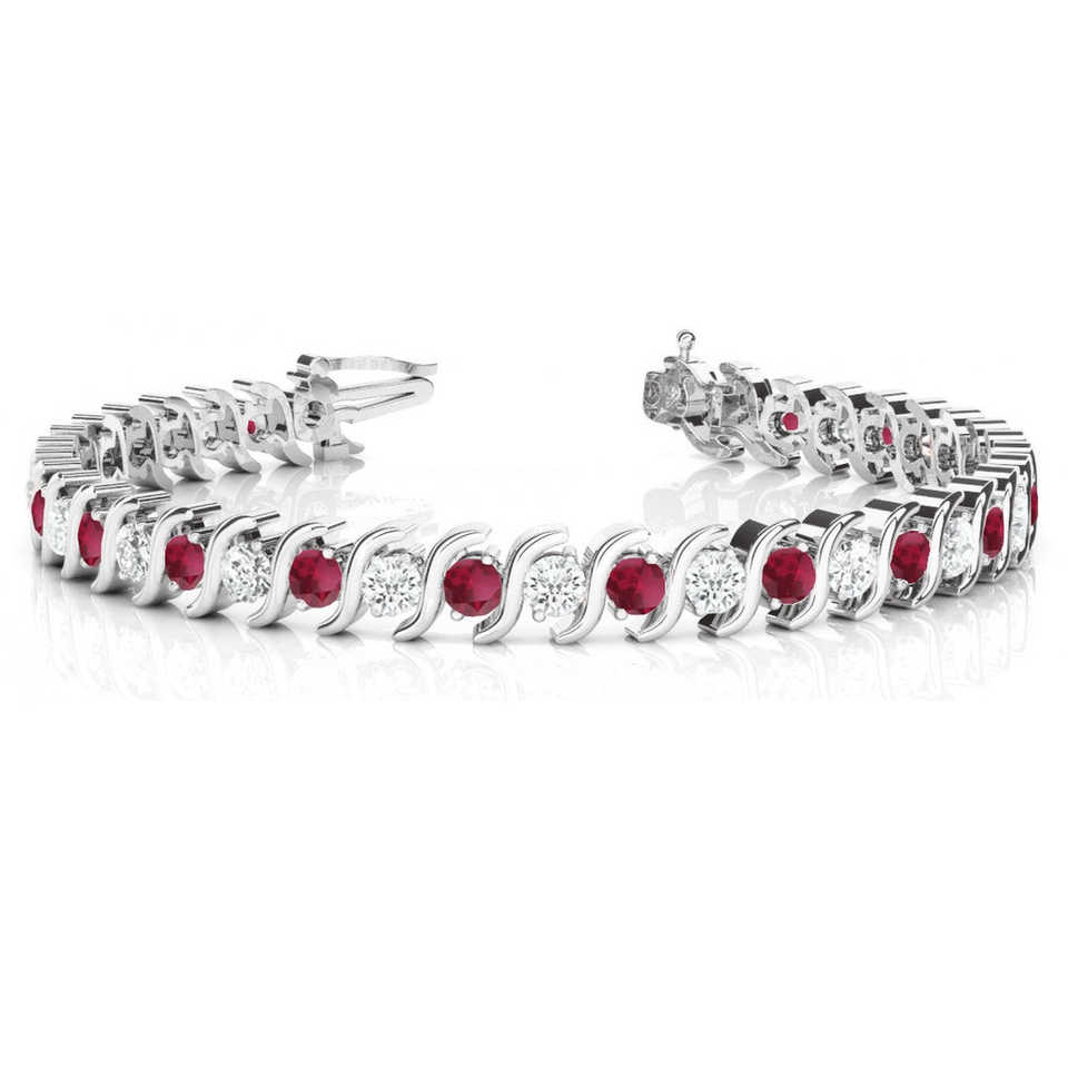 สร้อยข้อมือเทนนิสทองคำขาว 14K พร้อมพลอยโกเมนและเพชร (4.00 กะรัต)