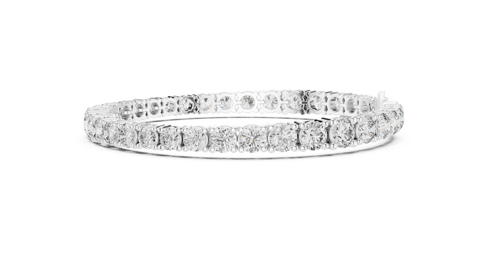 สร้อยข้อมือแต่งงานผู้หญิงทองคำขาว 14K ดีไซน์เพชรทรงกลมเพาะเลี้ยงในห้องปฏิบัติการ | เพชรที่เพาะเลี้ยงใหม่