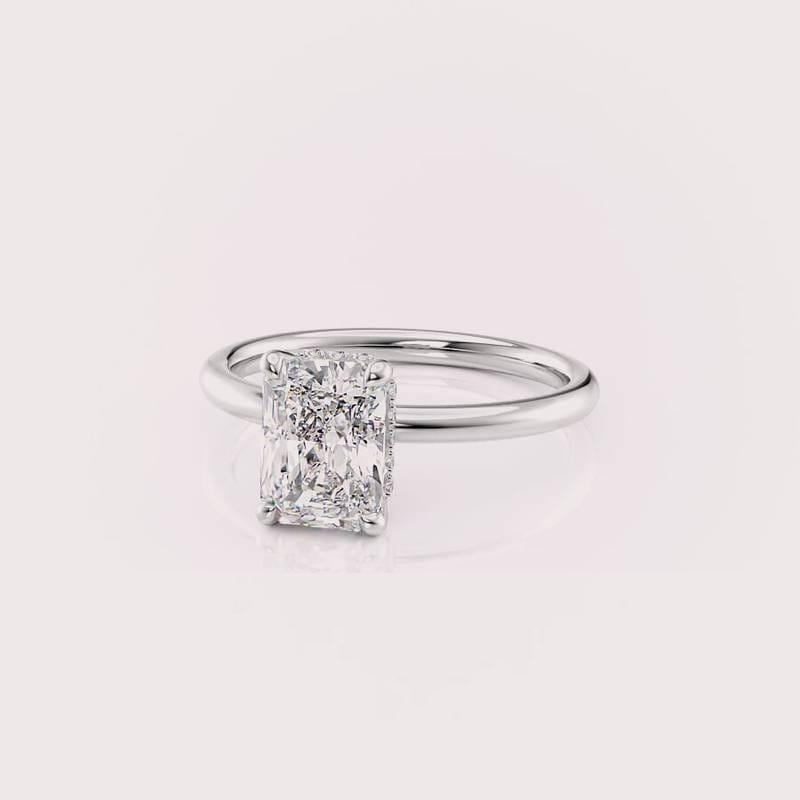 แหวนเพชรเม็ดเดี่ยวทรงเรเดียนท์คัท 14K ทองคำขาว/โรสโกลด์/เหลือง ประดับเพชรแล็บโกรว์ พร้อมวงแหวนซ่อน | เครื่องประดับหมั้นแบบสั่งทำพิเศษ ได้รับการรับรองจาก IGI