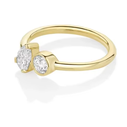 แหวนแต่งงานทองคำขาว 14K สีเหลืองและสีโรสโกลด์ ประดับเพชรสองเม็ดทรงอัสเชอร์และทรงเอเมอรัลด์ แหวนหมั้นแฟชั่น