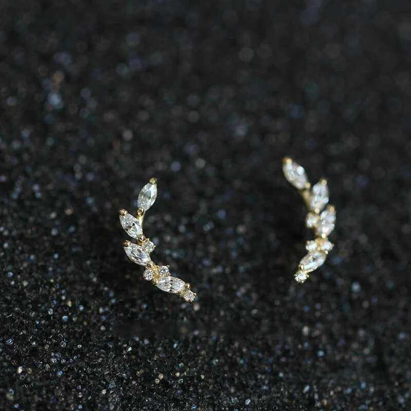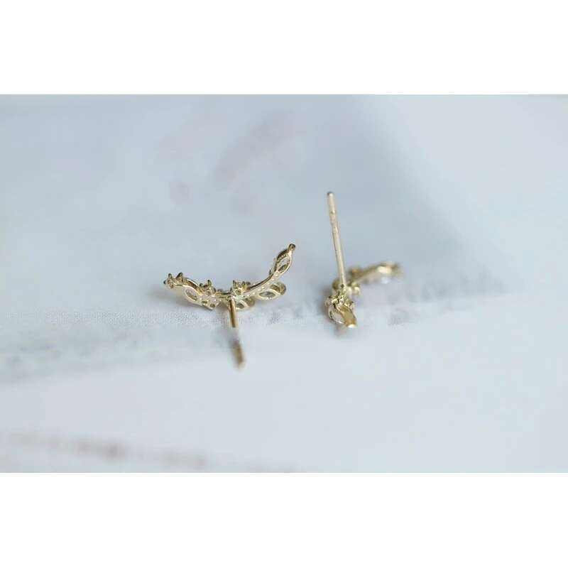 ต่างหูทองคำแท้ 14K ประดับคริสตัลและเพชรเทียมทรงโค้งรูปใบลอเรล สำหรับผู้หญิง ดีไซน์ทันสมัย ขายส่ง GOL Dtutu