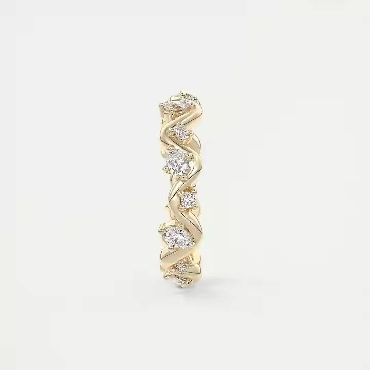 แหวนทอง14K สีเหลืองพร้อมวงรีตัดเพชรที่ปลูกในห้องปฏิบัติการครบรอบแต่งงานที่ดีที่สุดของขวัญสำหรับแหวนดีของเธอ