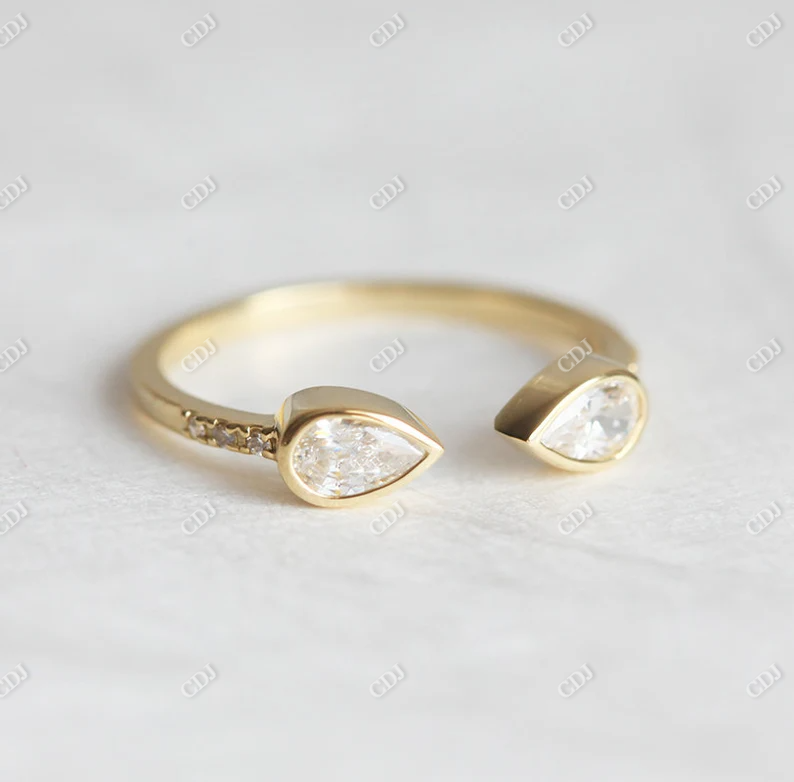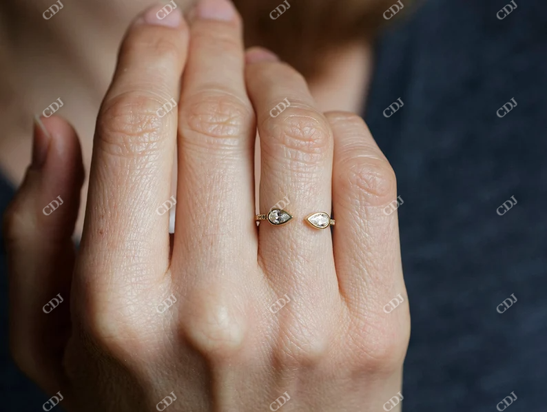 แหวนหมั้นทองคำ 14K แบบ Prong Setting ประดับเพชรโมอิสซาไนต์ทรงลูกแพร์ 0.60 กะรัต ดีไซน์ Toi et Moi แหวนแต่งงานแบบเปิด ปรับขนาดได้สำหรับผู้หญิง