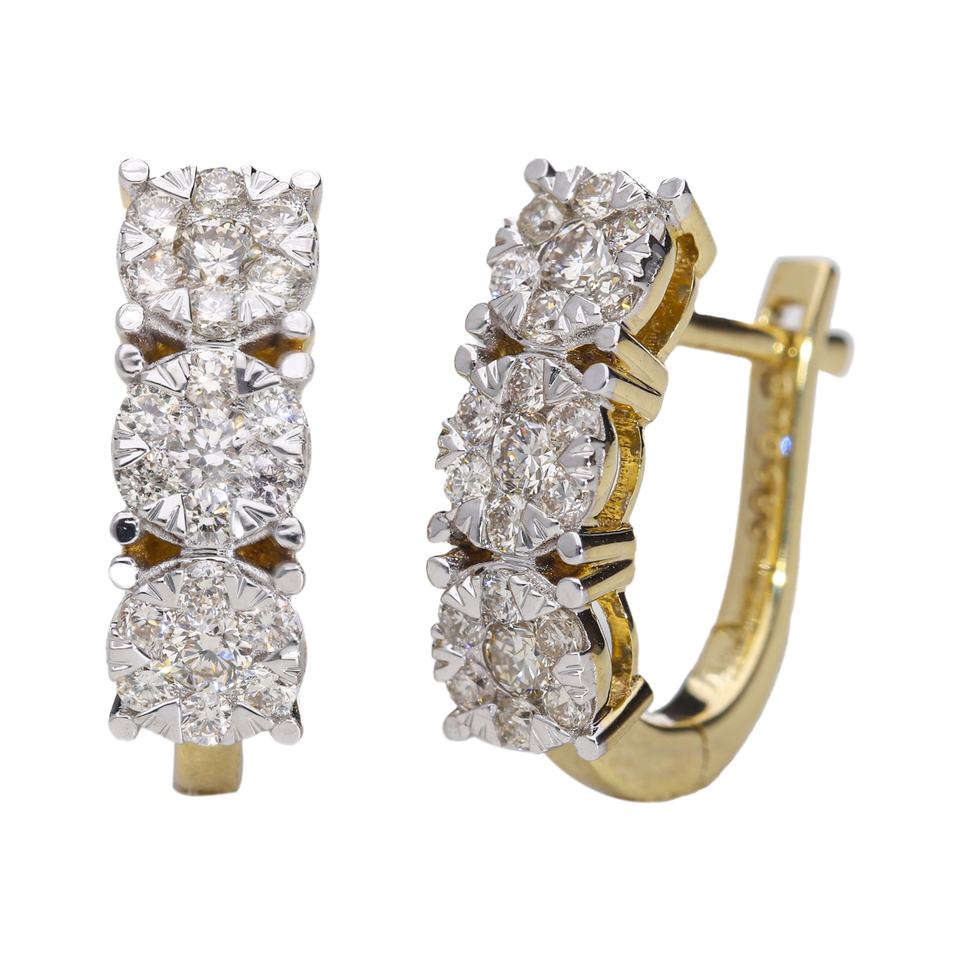 ต่างหูห่วงทอง14K สีเหลืองทองคลาสสิก0.64 tcw ตัดสดใสสำหรับผู้หญิงสวมใส่ทุกวัน