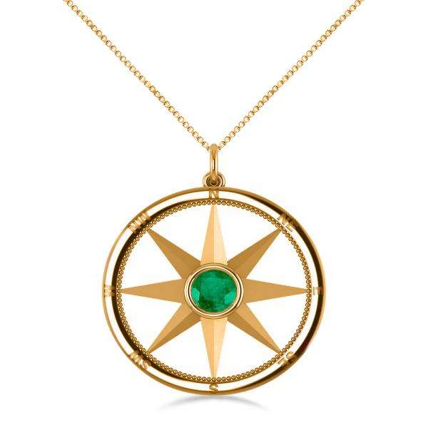 สร้อยคอจี้รูปเข็มทิศทองคำ 14K สีเหลือง ประดับพลอยมรกต เพชร 0.66 กะรัต และมอยส์ซาไนต์ รูปทรงเรขาคณิต ชุบโรเดียม ทองชมพู ทันสมัย
